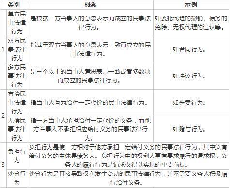 民事法律行为的分类