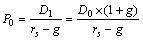 某些企业的股利是不断增长的。当公司进入可持续增长状态时,其增长率是固定的,则股票价值为: